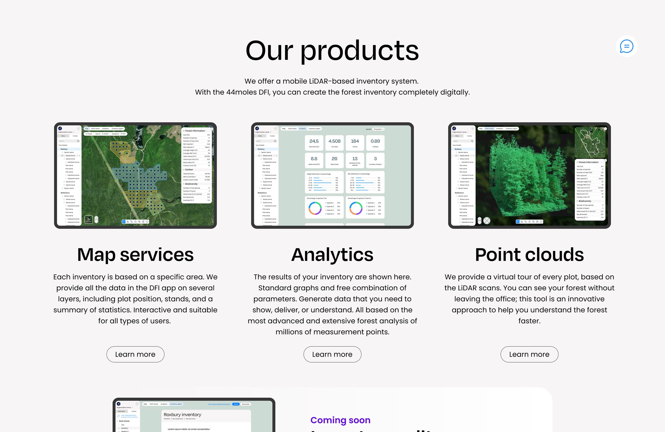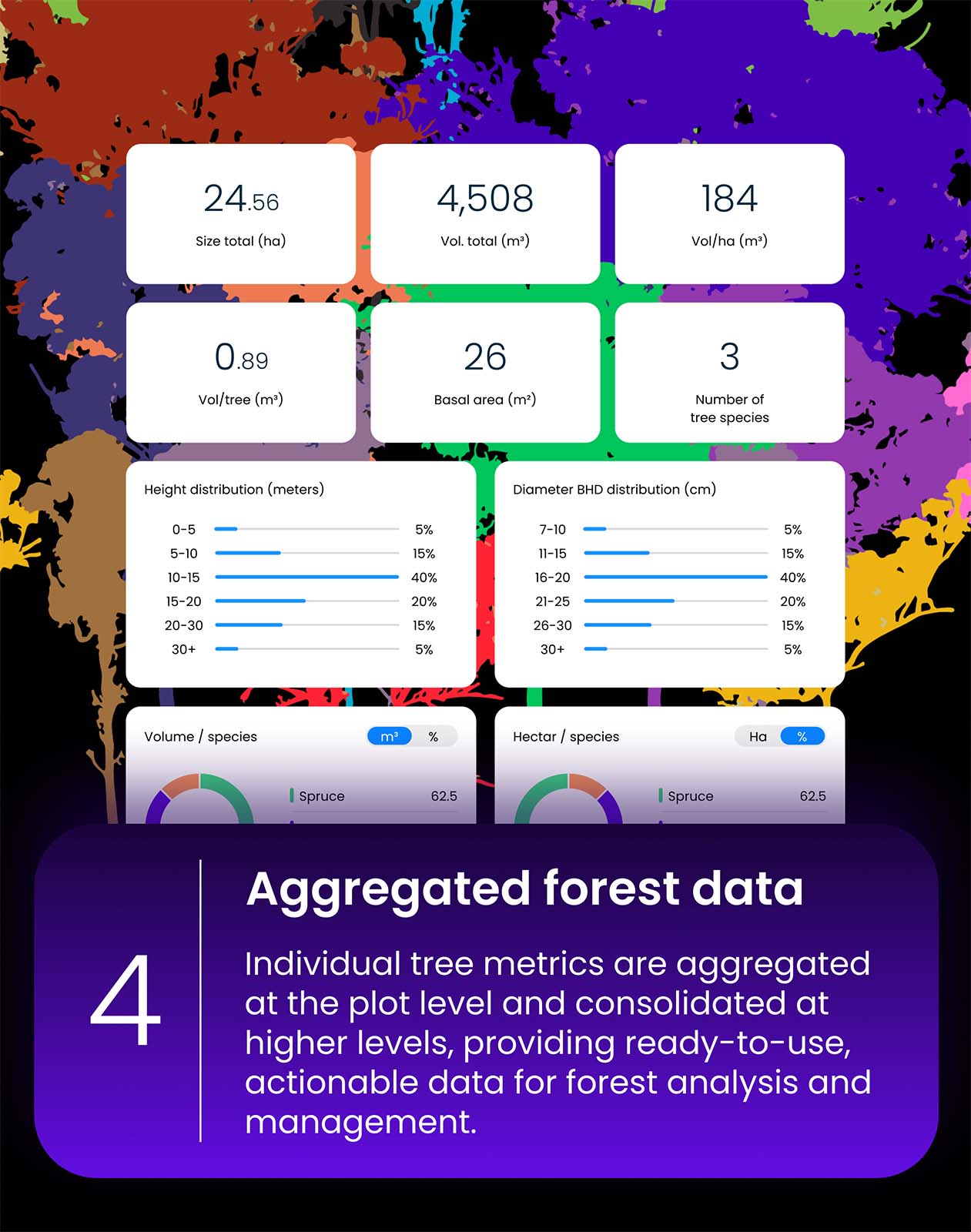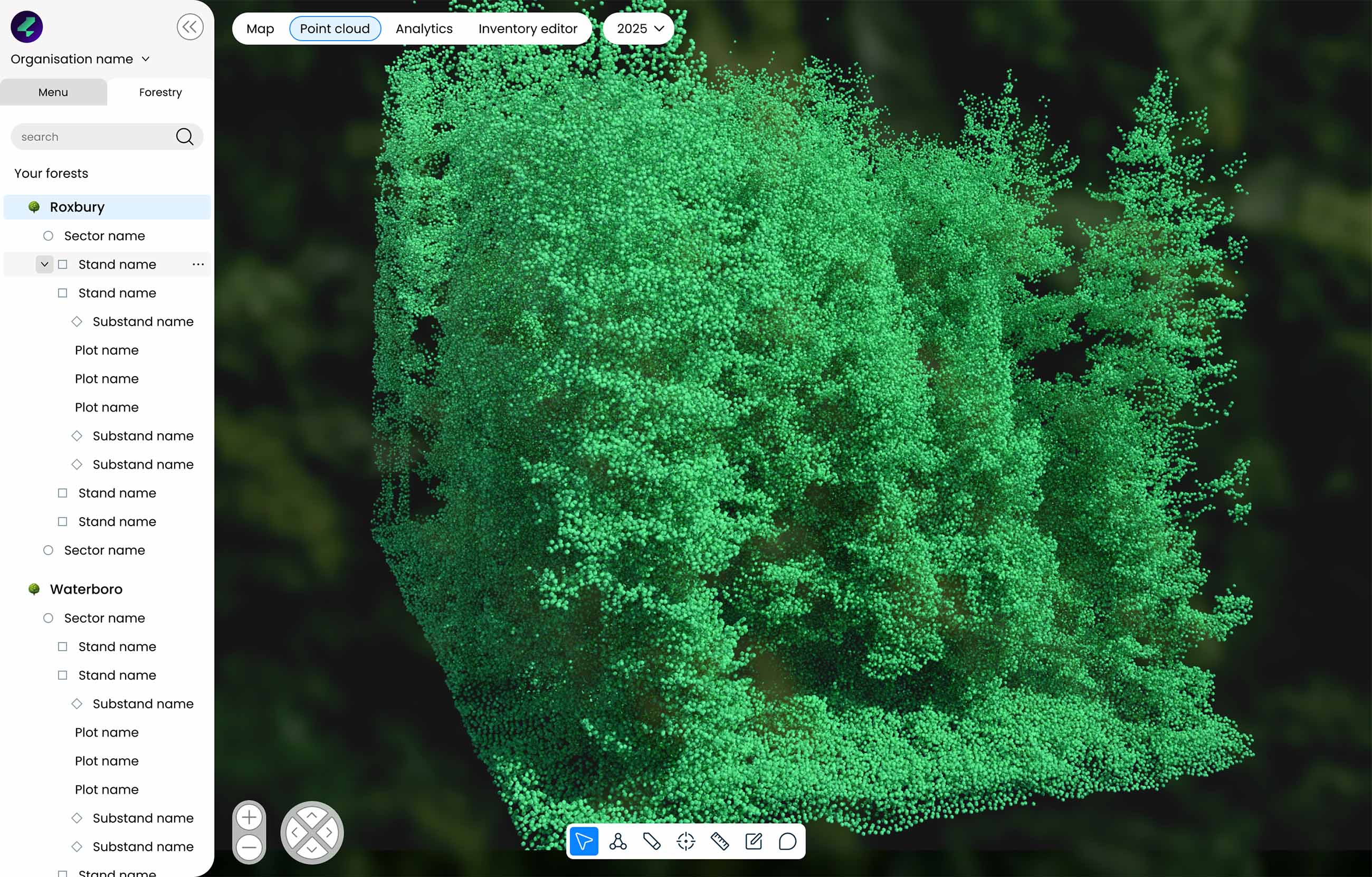 Challenge: Build a digital forest inventory (DFI) application from scratch that translates LiDAR scans and advanced backend data into a clear, interactive forestry tool. The goal was to turn highly complex spatial and analytical data into a high-end product that supports mapping, point-cloud exploration, analysis, and inventory management.
