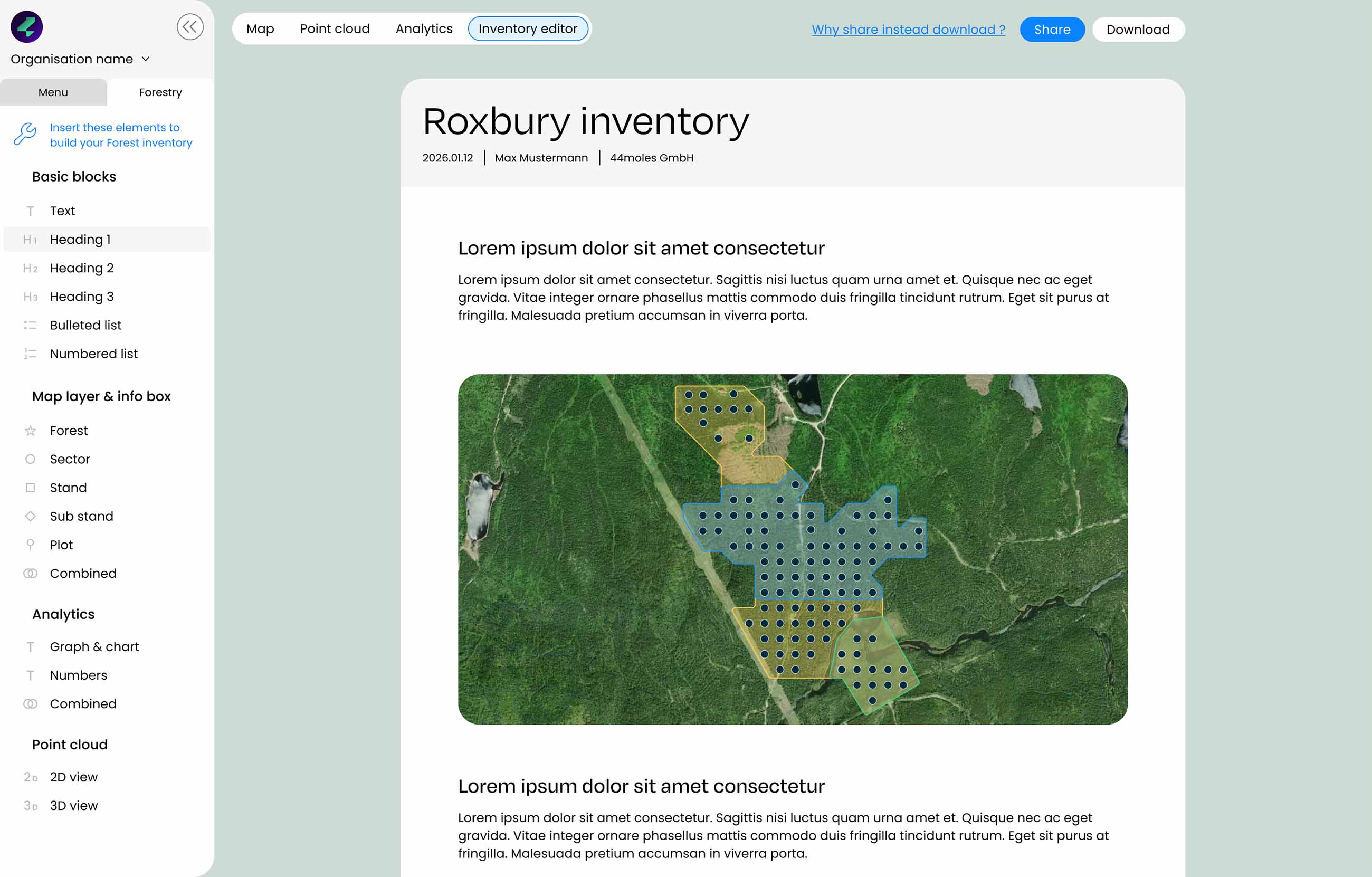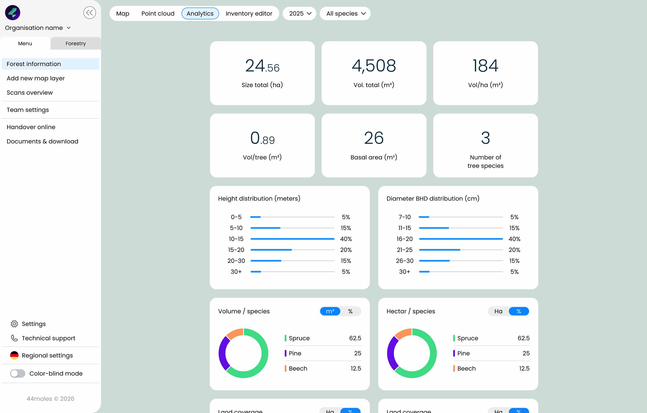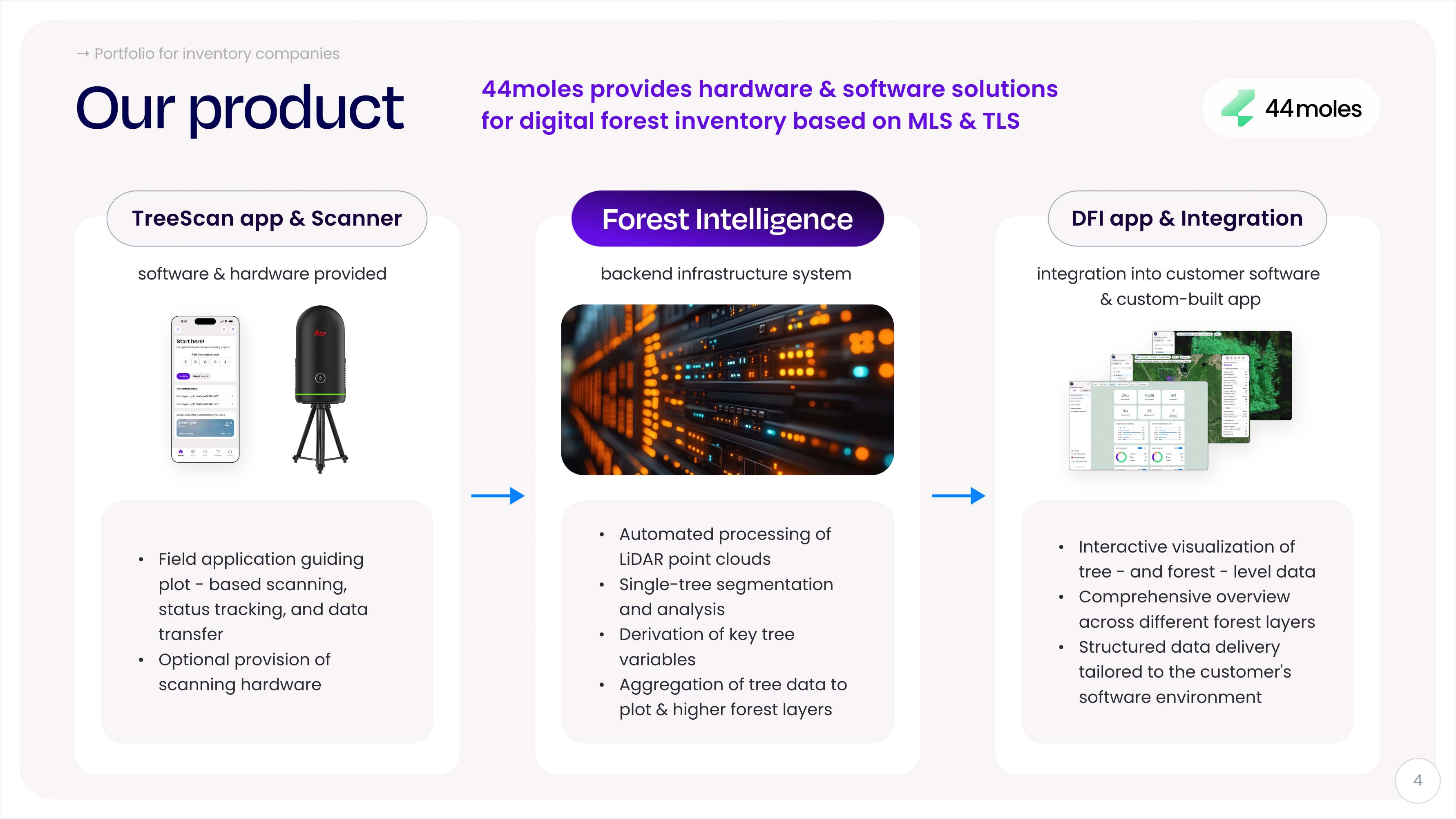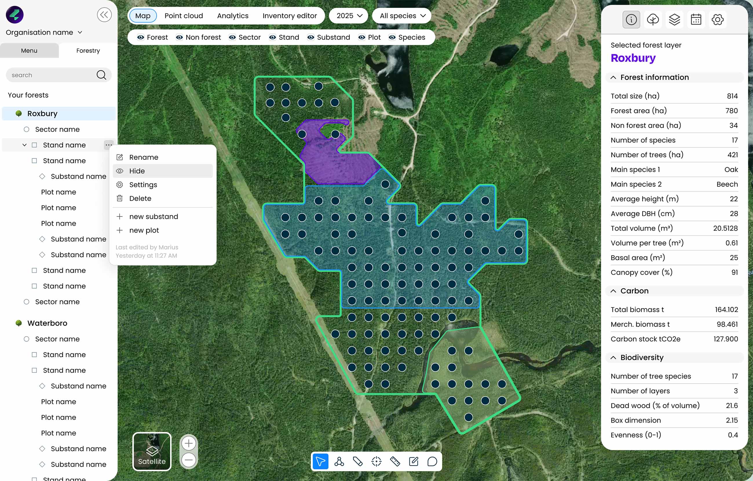 Challenge: Build a digital forest inventory (DFI) application from scratch that translates LiDAR scans and advanced backend data into a clear, interactive forestry tool. The goal was to turn highly complex spatial and analytical data into a high-end product that supports mapping, point-cloud exploration, analysis, and inventory management.