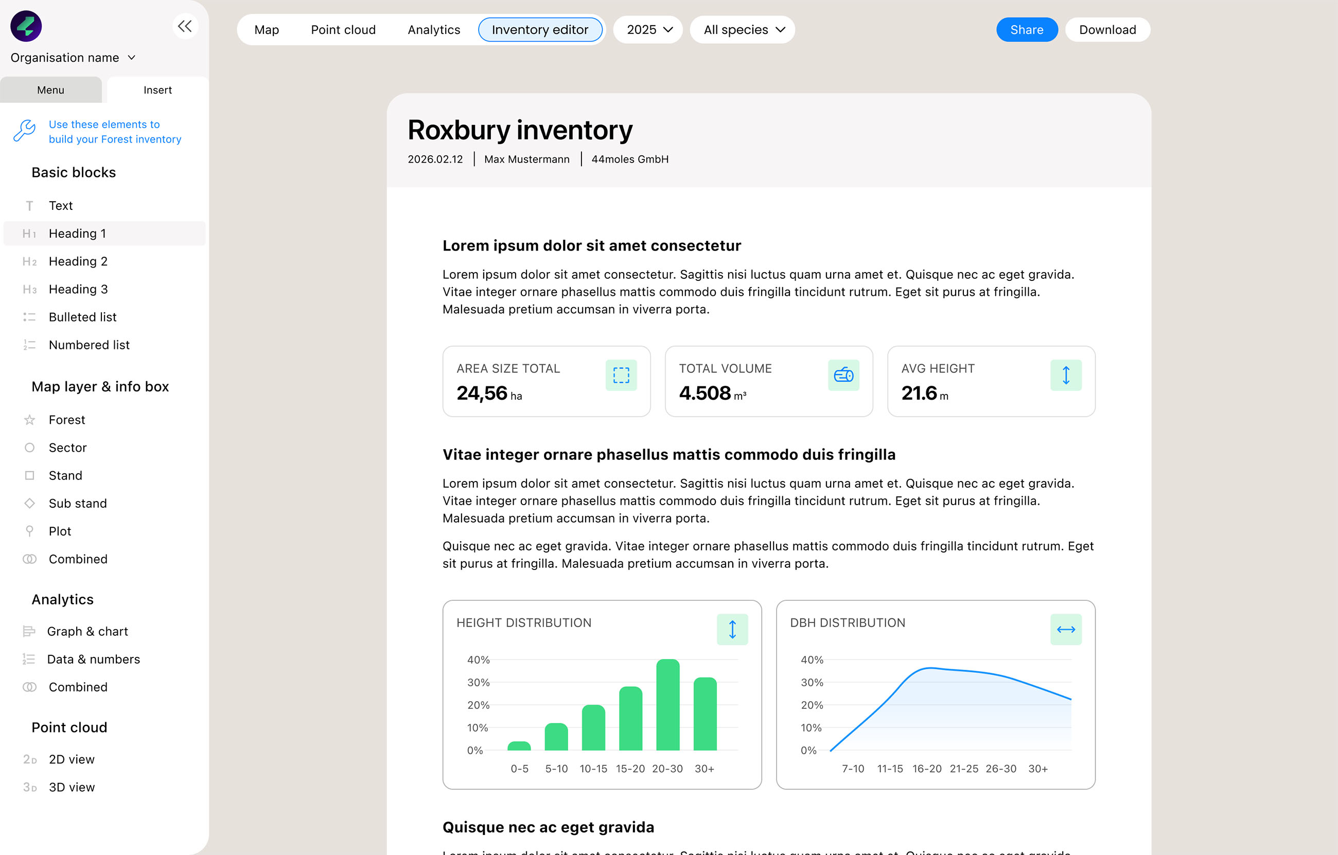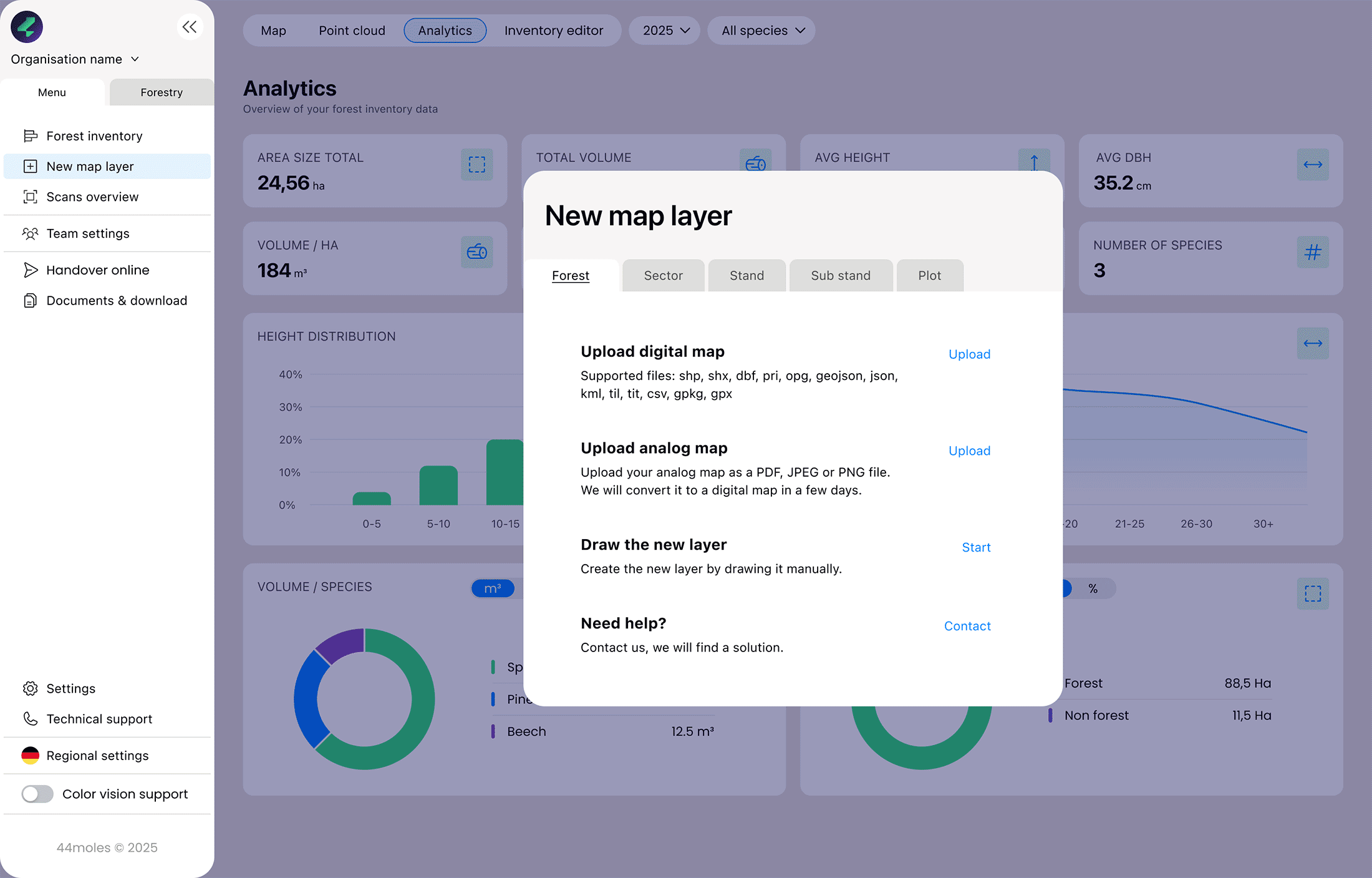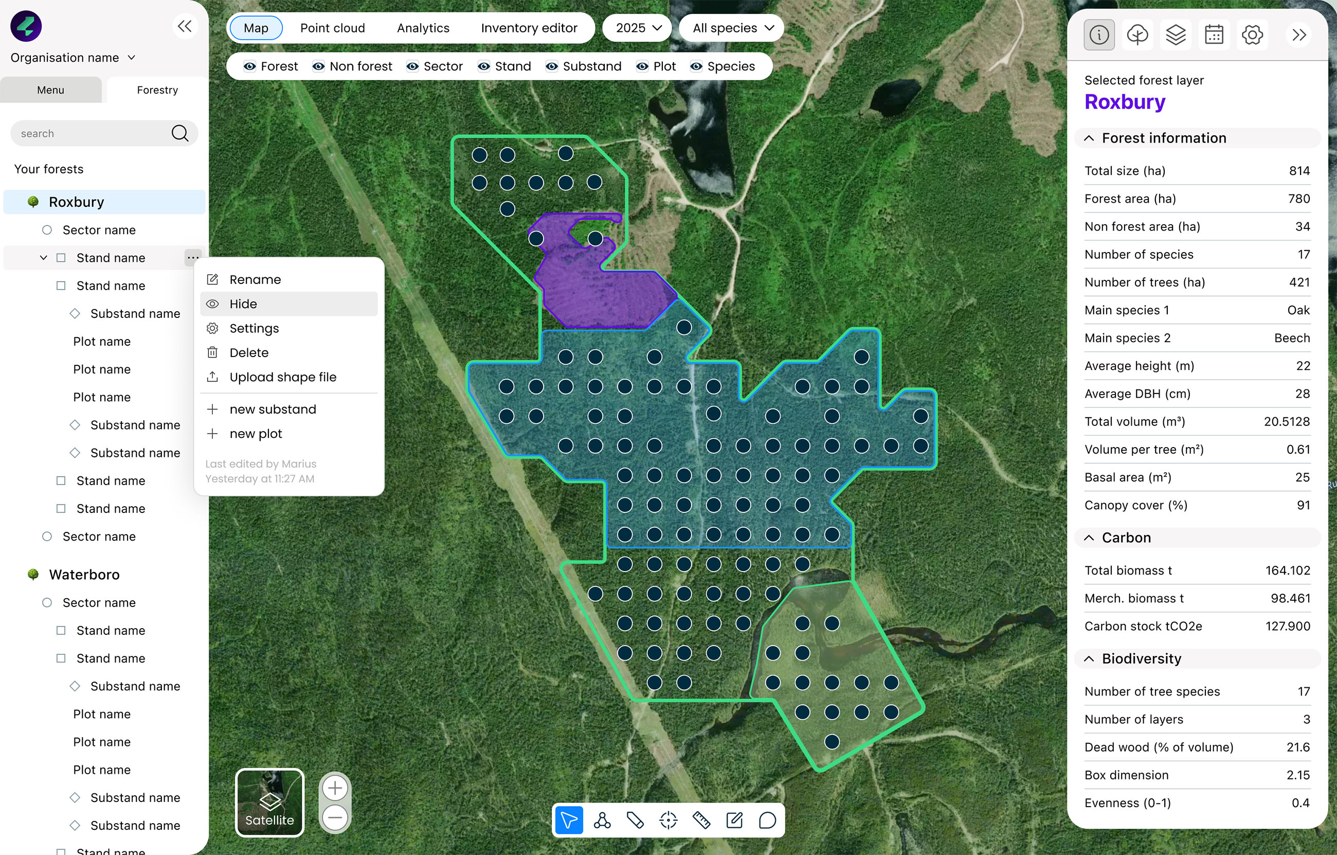 Challenge: Build a digital forest inventory (DFI) application from 0 to 1 that translates LiDAR scans and advanced backend data into a clear, interactive forestry tool. The goal was to turn highly complex spatial and analytical data into a high-end product that supports mapping, point-cloud exploration, analysis, and inventory management.