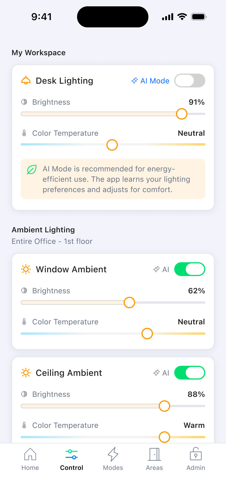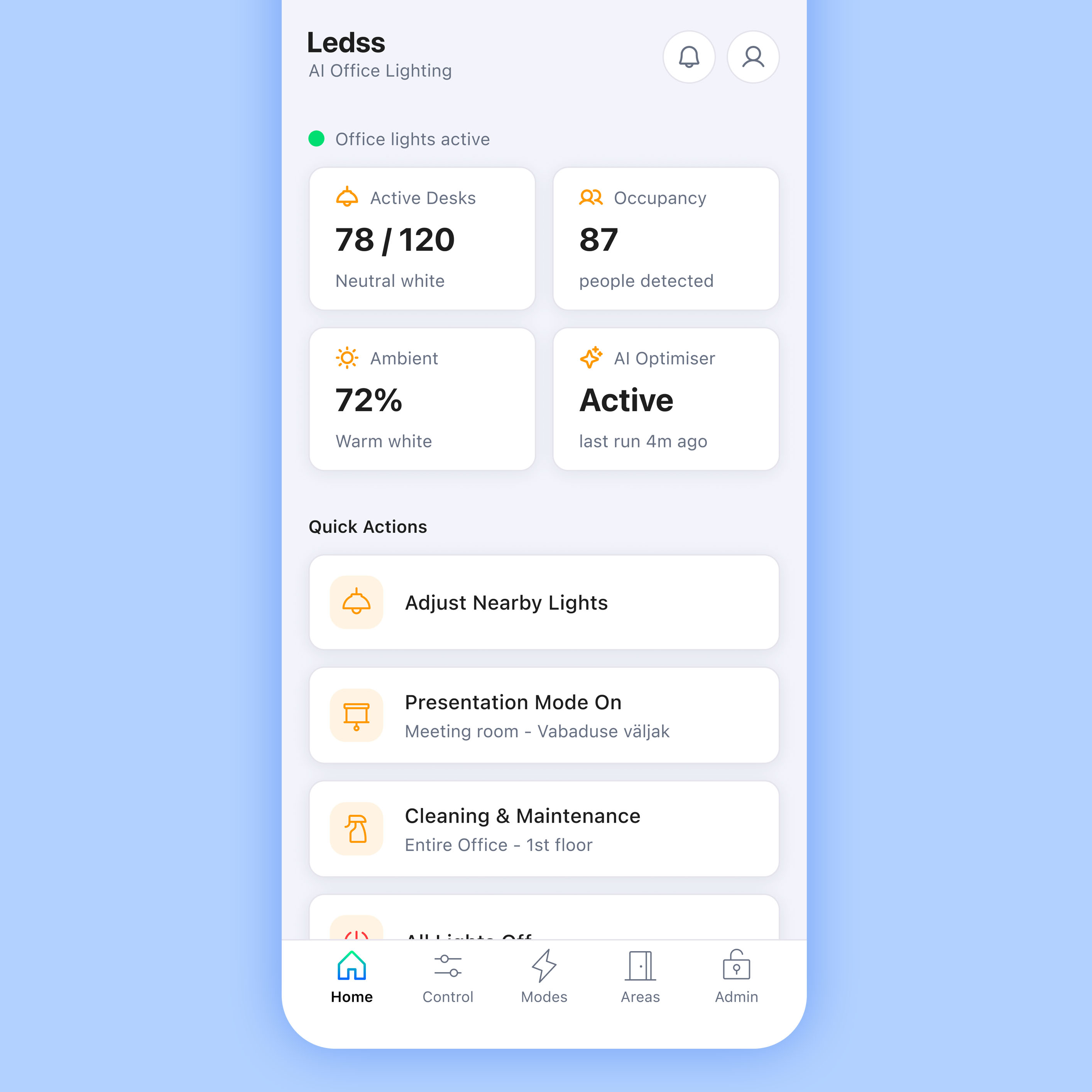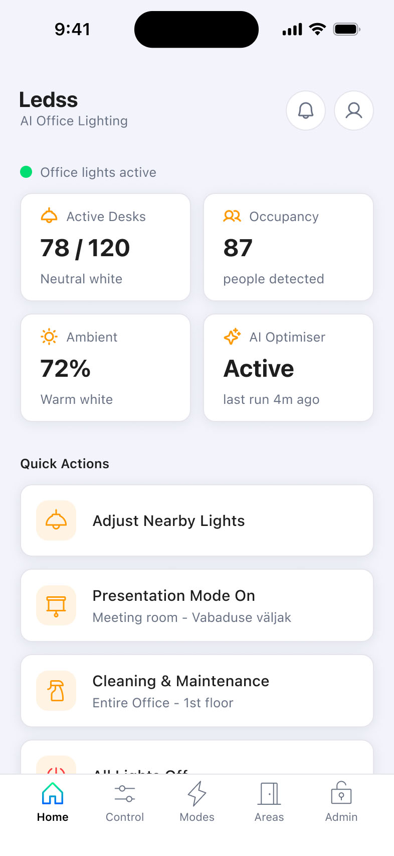 Ledss is an intelligent office lighting system developed in Estonia, combining lighting engineering expertise with an AI-powered backend and mobile application. I led the end-to-end UX/UI and branding design, taking the product from 0 to 1.
